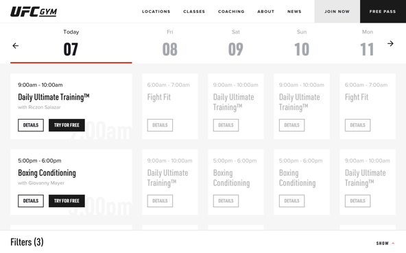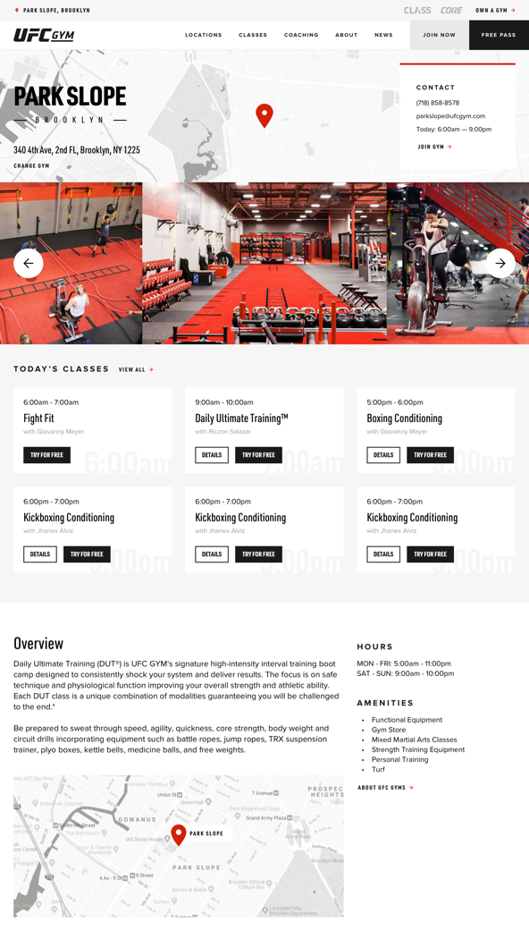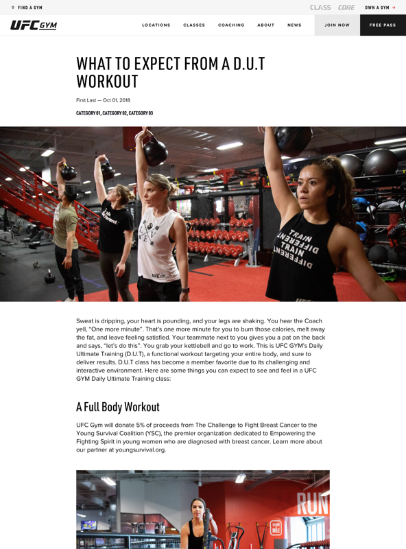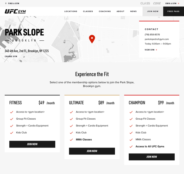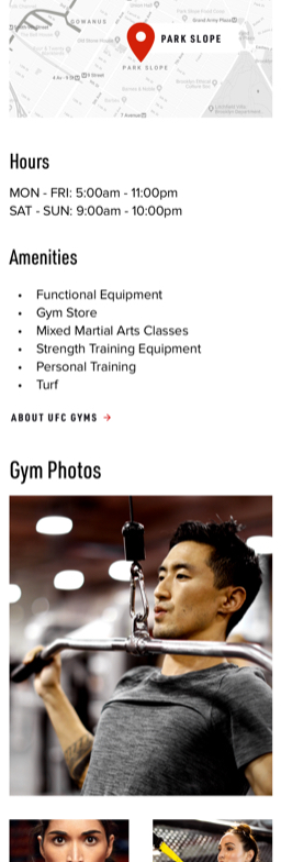 Since location pages are highly visited and have lower bounce rates, we allowed individual locations to manage their content with an approval to publish process. Franchises get more flexibility to include their biggest sales magnets like specials and new, on-trend classes. Guest passes and discounts promoted by individual locations proved key to getting people through the door. With UFC’s strong commitment to community, we empowered each gym to own its unique identity to bolster community pride.